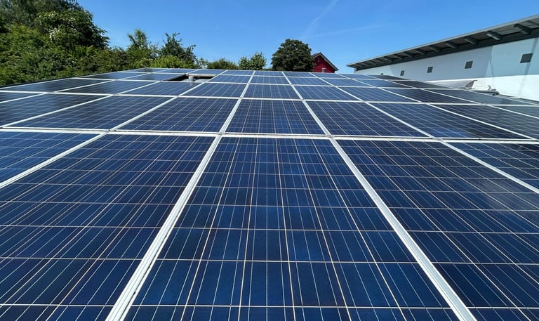 Moderne Solarpanels mit glänzender Oberfläche, die durch unsere Reinigung ihre volle Leistung entfalten.
